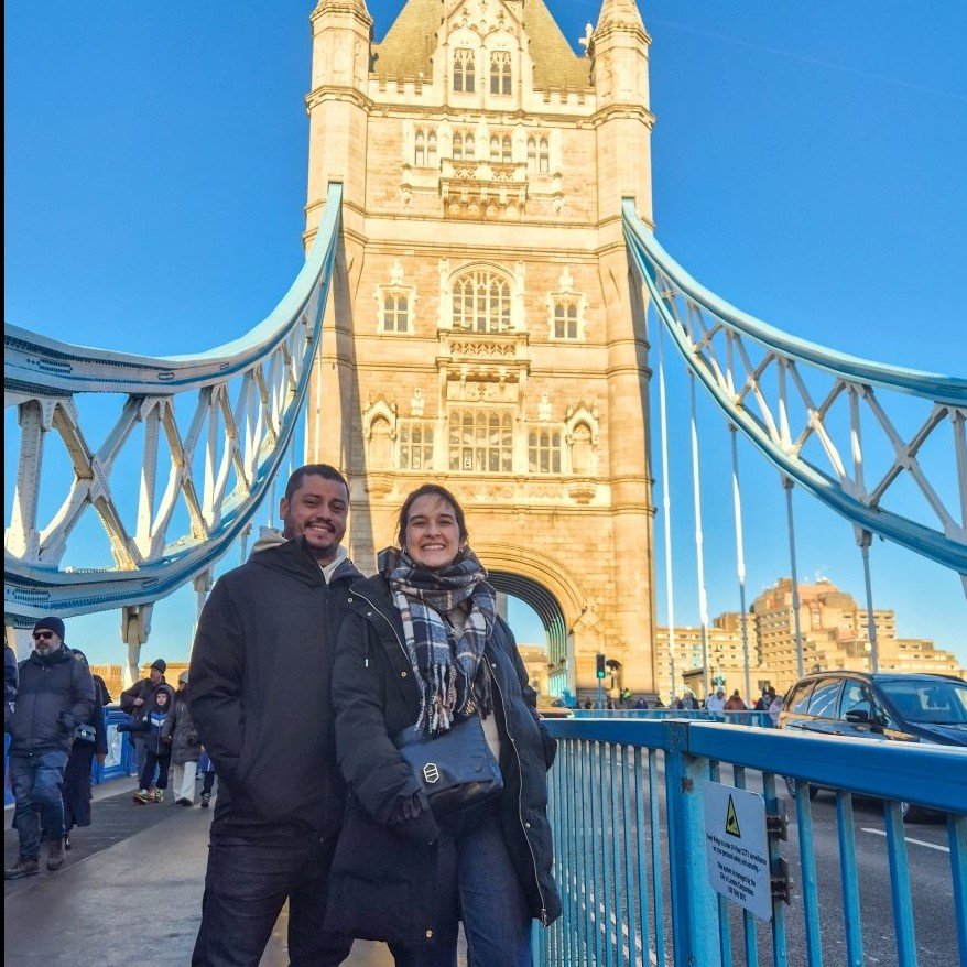 Somos um casal que não dispensa um pé na areia e que tem o passaporte sempre pronto para a próxima aventura. Entre uma cerveja gelada e uma boa taça de vinho, construímos o nosso mundo: um lugar onde a comunicação flui solta, as risadas são garantidas e a diversão não tem limites — especialmente quando estamos rodeados pelos nossos amigos e com a energia renovada para celebrar!